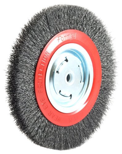 The Forney 72762 8-Inch Wide Face Crimped Wire Bench Wheel Brush is great for cleaning metal surfaces, blending surfaces, removing light burrs, paint, rust and corrosion. Used for light to medium duty brushing action on large surface areas. Forney Industries is one of America’s longest operating family-owned metal working product companies. Founded in 1932, Forney offers more than 5, 000 products for the hardware, automotive, farm and ranch and do-it-yourself markets. 8-Inch (203. 2-mm) by0. 012-Inch (0. 306-mm) with 1/2-Inch – 5/8-Inch (12. 7-mm – 15. 88-mm) arbor sizes. Max 6, 000-RPM. Claims for must be made within 90 days of the date of purchase. Proof of purchase required. This does not cover any product that has been subject to misuse, neglect, negligence or accident, or that has been used in any way contrary to the purpose intended.