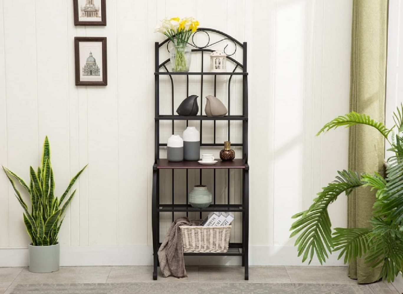 The Valencia Baker’s Rack is any baker’s new best friend, especially if you’re short on storage space. Four shelves hold pots and pans, cookbooks, pantry staples, and storage containers. A wide middle shelf, made from engineered medium density fiberboard, is a perfect serving area when you have guests over. This rack has storage your kitchen has been dreaming of, but it also doesn’t look out of place displayed in a living room or entryway. Whether you style the piece as a bookcase, kitchen rack, or entryway storage, the Valencia is sure not to disappoint.