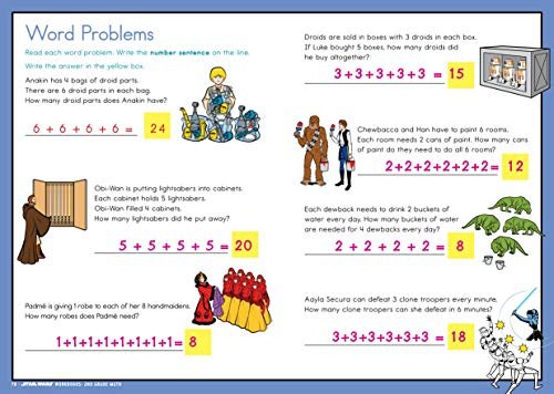 Twelve titles launch the seriesthree each for Pre-K through 2nd Gradeand dig deep into core subjects, including numbers, ABCs, phonics, and reading readiness for younger grades, and math, reading, and writing for the older ones. The material, which aligns with national Common Core State Standards, is designed to reinforce essential concepts and lessons taught in schools. Any child, not just fans of Star Warsbut yes, those fans will be especially delighted (as will reluctant learners)will love the A is for Anakin approach to phonics. Kids will practice learning numbers by counting and circling X-wing starfighters and clone troopers. Master place values by sorting groups of Wookiees. There are math problemsYoda is holding 7 lightsabers. 5 of the lightsabers are blue. The rest are green. How many green lightsabers is he holding? And Language ArtsCircle the correct homophone in this sentence: Luke is a Jedi knight/night.
