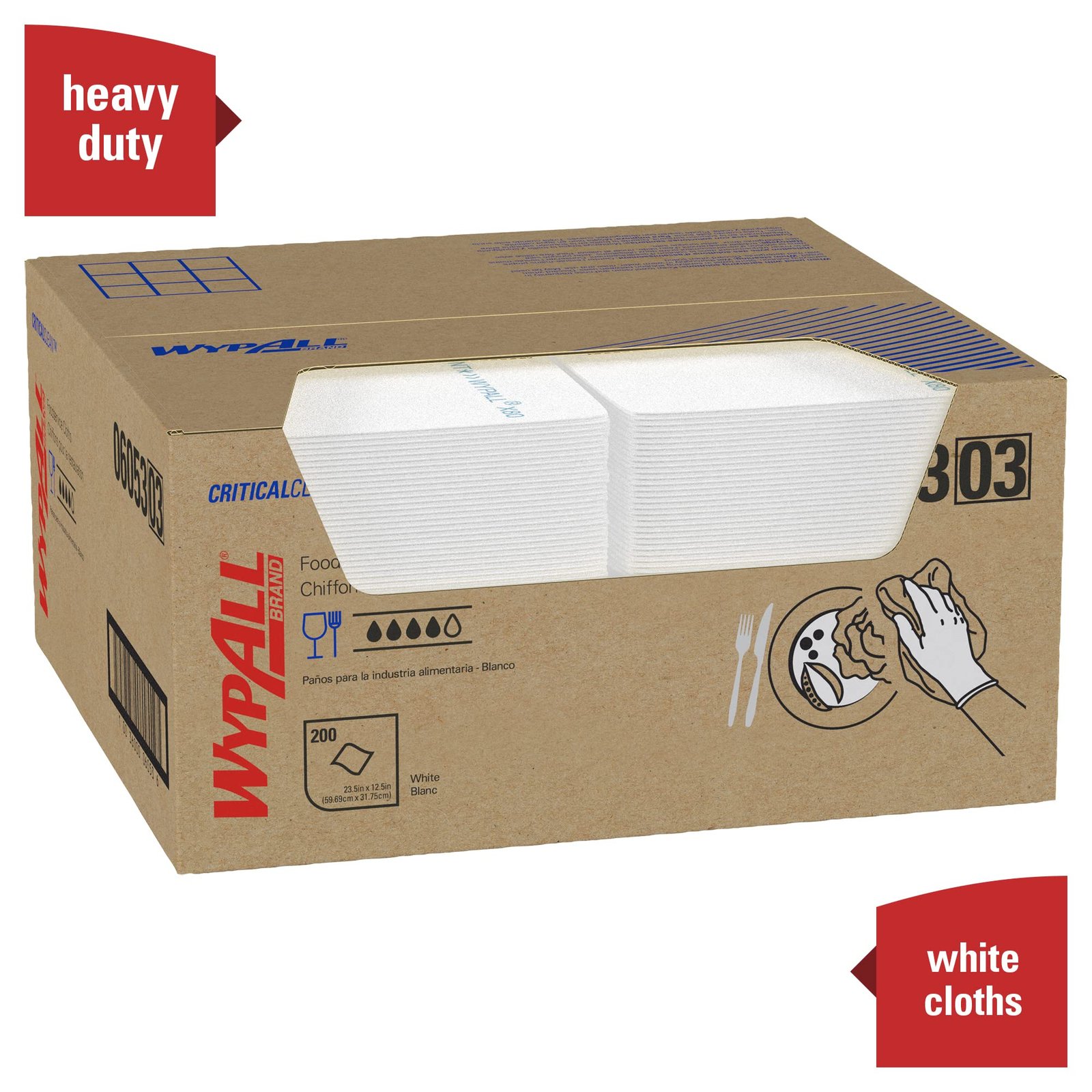 WypAll X50 Extended Use Foodservice Towels Reusable Wipers (06053), Quarterfold, White, 1 Box, 200 Sheets