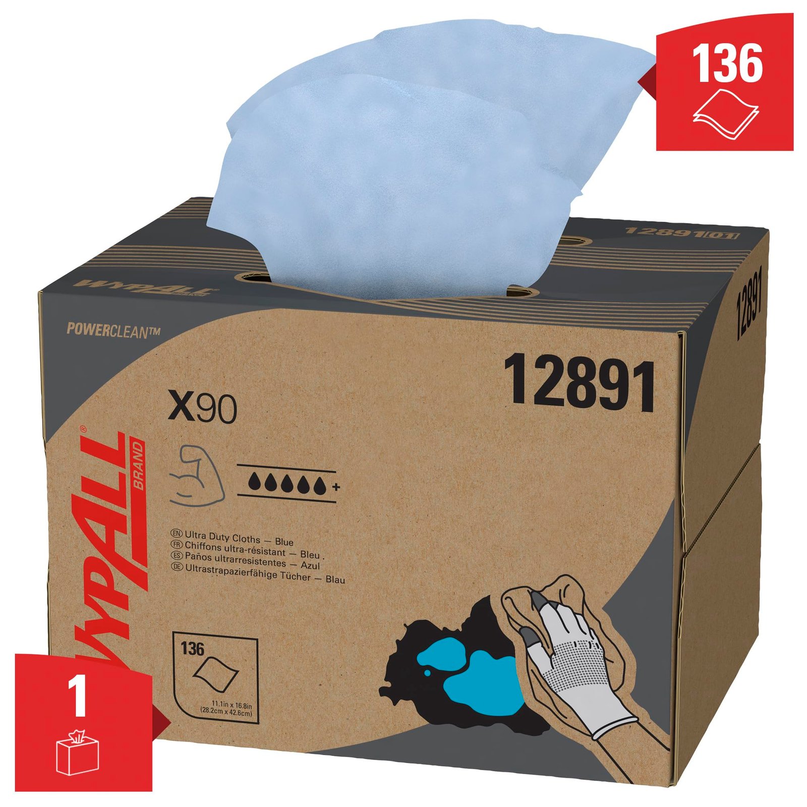 WypAll is the number one brand of disposable wipes in the US and Canada. Maximize performance while minimizing time, effort and product waste. When you have a tough job, reach for WypAll Power Clean X90 Ultra Duty Cloths in the large BRAG Box format. With their innovative design, WypAll Power Clean X90 Ultra Duty Cloths have the highest fluid capacity of any WypAll Brand product; they can lift and release fluid. In fact, they provide 75% more oil absorption and 35% more water absorption (than WypAll X80 cloth). They deliver superb fluid handling which allows you to accomplish clean wiping applications like never before. They’re ideal for solvent wiping, surface preparation, equipment cleaning, repair and maintenance tasks, so when you need durability, cleanliness and high fluid capacity, reach for WypAll Power Clean X90 Ultra Duty Cloths. They contain no glues, adhesives or binders, which means there are low extractables for very clean solvent wiping. They feature outstanding fluid reservoir capacity for absorbing or delivering fluids – so you’ll waste less of your valuable solvents (they release 90% of the solvents they absorb, outperforming rags and reducing your solvent spend). In addition, these cloths feature increased durability for continual and repeated use, just like a cloth. The WypAll Brand guarantees a 20% savings in solvent usage overall. Moreover, the innovative dispensing solutions are portable, so cloths can go anywhere.