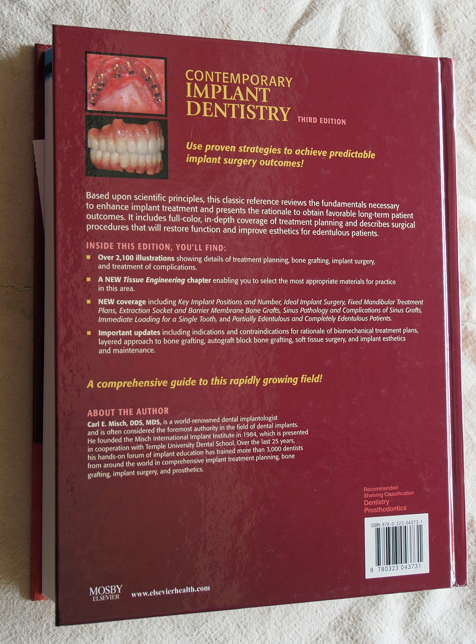 Turn to this new third edition for consistent outcomes on even your most complex implant cases! World-renowned dental implantologist Carl E. Misch gives you expert advice and guidance on the various surgical approaches to placing implants in the revision of his best-selling classic. Over 1,000 full-color illustrations depict details of implants, related materials, and surgical procedures, while well-known contributors (Mohamed Sharawy, Martha Warren Bidez, Adriano Piatelli, and others) share a wealth of knowledge in their respective fields. This third edition provides an excellent opportunity for you to develop and refine your skills and experience more consistent, predictable clinical outcomes. Thorough explanations of the rationale for implants and their specific characteristics discuss why different options work better for different patients; the rationale behind implant materials and sizes; and the overall science of osteointegrated implants – providing a full understanding of how implants behave under certain circumstances and how to make the best choices for implant patients. Chapter on Diagnostic Imaging and Techniques focuses on the latest technology available to determine patient conditions, familiarizing you with recent advances and how they apply to treatment planning principles. Section on Treatment Planning discusses the rationales for implant placement, variables in implants and patient conditions, and the four degrees of jaw bone density, Dr. Misch’s best-known criterion for successful implant placement. Prepares you for actual treatment by reviewing scientific fundamentals such as applied anatomy, biomechanical principles, current biomaterials, prevention and management of dental infections, and pharmacologic considerations. Surgical procedure chapters are of benefit to the implant surgeon and are critical to the restoring dentist who wants to better understand and appreciate surgical concepts. Over 1,000 full-color illustrations depict details of implants, related materials, and surgical procedures. Brand-new coverage includes: Key Implant Positions and Number, Ideal Implant Surgery, Extraction Socket and Barrie Membrane Bone Grafts, Sinus Pathology and Complications of Sinus Grafts, Immediate Loading for a Single Tooth, Partially Edentulous and Completely Edentulous Patient. Important updates include indications and contraindications for rationale of biomechanical treatment plans, layered approach to bone grafting, autograft block bone grafting, soft tissue surgery, and implant esthetics and maintenance. A new chapter on Tissue Engineering uses current information on platelet-rich plasma membranes and other elements of tissue engineering so you can take advantage of appropriate materials. Emphasis on evidence-based implant outcomes provides valuable information on which procedures have the greatest likelihood of success and lowest risk of complications.