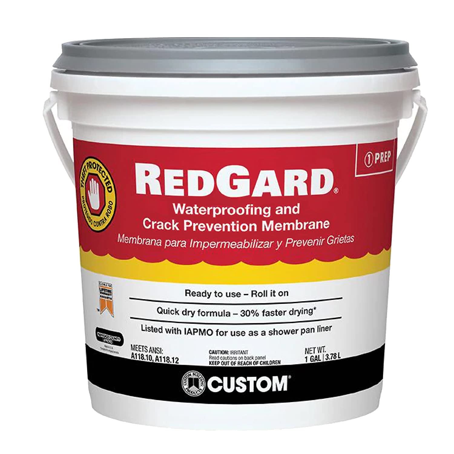 CUSTOM BLDG PRODUCTS LQWAF1-2 Redgard Waterproofing, 1 gal