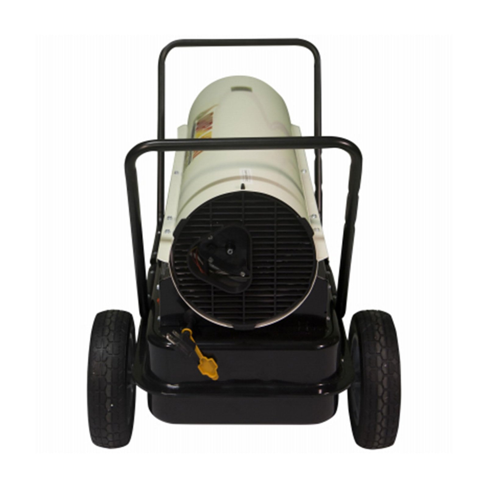 Dura Heat 135,000 BTU Forced Air Kerosene Heater, Commercial Grade for Construction, Garage, Outdoor, 10 Gallon Tank, 3200 sq ft Area, LED Diagnostics, CSA Certified The Dura Heat 135,000 BTU Forced Air Kerosene Heater is the perfect solution for providing fast, reliable heat in a wide range of environments. Whether you’re heating a construction site, garage, or workshop, this powerful heater offers superior performance with a 500 CFM airflow, quickly warming spaces up to 3,200 square feet. It is designed to operate efficiently using kerosene, #1 and #2 fuel oil, diesel, or jet fuel, giving you the flexibility to use whatever fuel is most convenient for your location. This forced air heater features a 10-gallon fuel tank and offers a 10-hour runtime at a fuel consumption rate of 1 gallon per hour. With its user-friendly one-touch electronic start, you can quickly get the heater up and running, while the LED digital diagnostics display makes it easy to monitor temperature and identify any error codes. Built for safety and durability, the Dura Heat heater includes several built-in features like flame-out shut-off protection, overheat protection, a built-in thermostat, and a “Run Time” fuel gauge. The cold-weather flat-free wheels ensure easy mobility, even in harsh outdoor conditions. The heater also boasts a CSA certification and is ETL listed, meaning it complies with industry standards for safe operation. Ideal for both indoor and outdoor use, this versatile, commercial-grade heater will keep your workspace warm and efficient in cold weather, whether on a job site or in a garage. Depend on the Dur