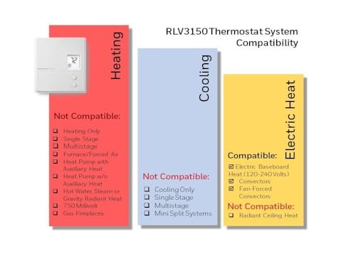 Honeywell Home RLV3100A1017 Digital Non-Programmable Thermostat for Electric Baseboard Heating – now with backlit screen. Easy to use and install. TRIAC silent switching for accurate temperature control of +/-0. 5 degree Fahrenheit. High-capacity electronic thermostat (up to 3000W @ 240V). Compatible with electric baseboards (120-240V), convectors and radiant ceilings. 2-Wire installation.