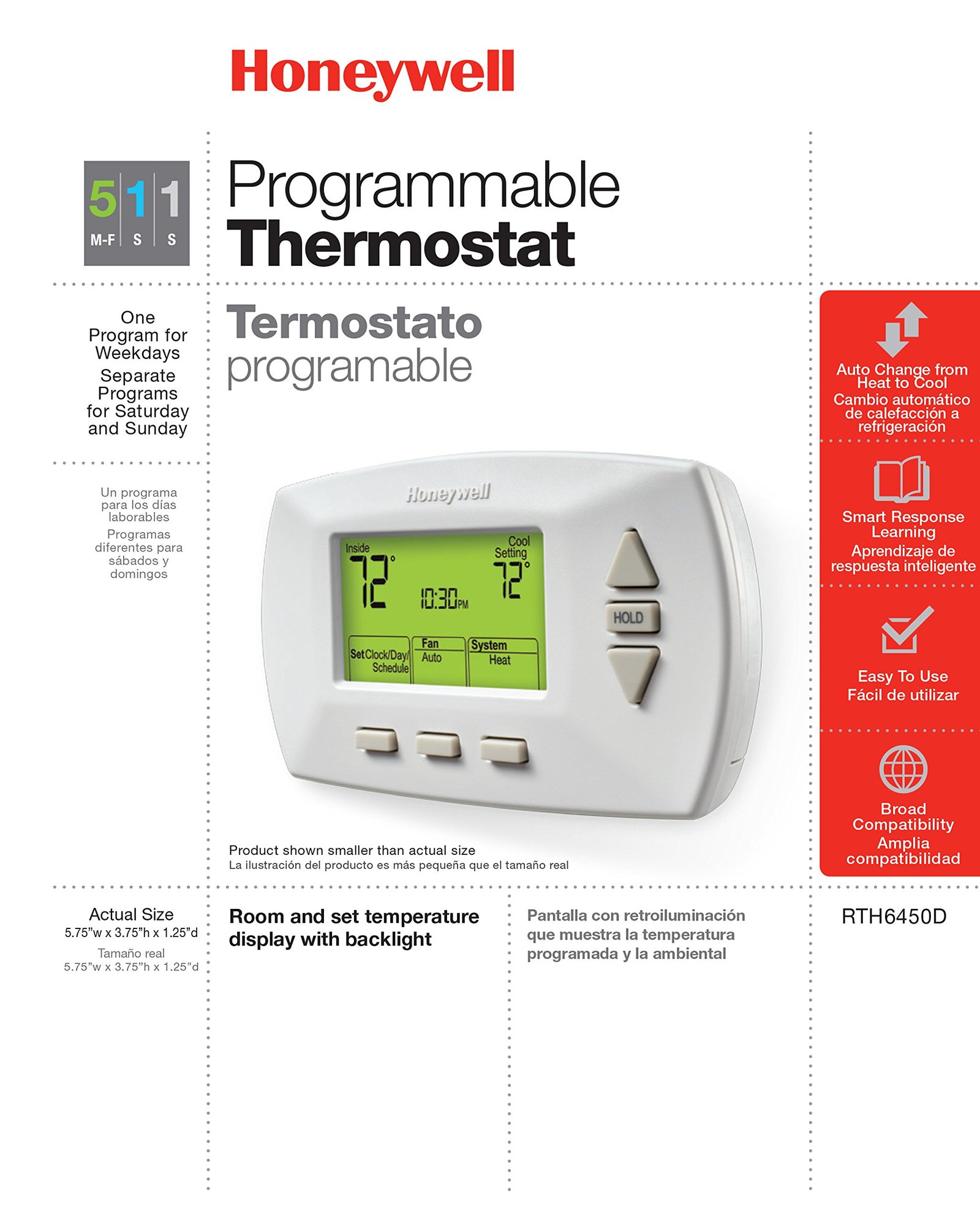 Keep your home comfortable with the RTH7600D seven-day programmable touchscreen thermostat from Honeywell (formerly packaged as model number RTH7600B). Designed for easy use and quick installation and packed with convenient features, this thermostat gives you programmable, customizable control over your home’s temperature without having to make constant manual adjustments.