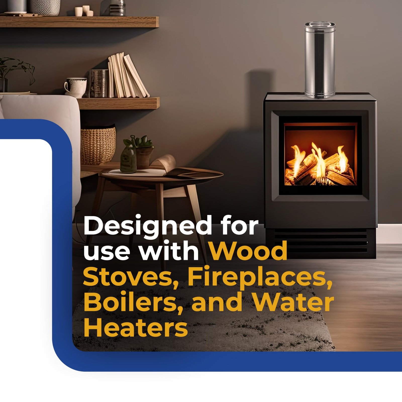 This 6”D x 12”L Dura plus chimney pipe is specially designed for appliances tested and listed for use with wood stoves, fireplaces, furnaces, boilers, stoves, ranges, water heaters, or other appliances fueled by wood, oil, coal, or gas.