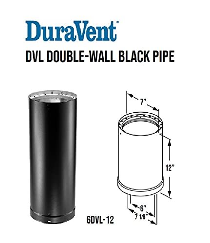 Simpson Duravent 6DVL-12 (Order# 810000902) Double-Wall Interior Black Stovepipe Connects Wood Stoves to Chimney, 016″ Stainless Steel Inner Wall, 018″ Galvanized Outer, 12″ Length, 6″ INNER Diameter