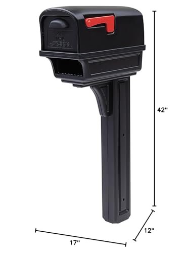 The Gibraltar Gentry all-in-one mailbox and post combo features a multitude of benefits that will exceed your demands. The Gentry’s large size and newspaper slot lends spacious capacity for your parcel deliveries. This mailbox is constructed with double-wall plastic for added protection, and features an ultra-violet inhibitor finish to obstruct color damage from the sun. Considerate of high traffic areas, it also features a back door to retrieve mail without entering the street. The Gentry can also fit over an existing 4×4 post for a quick and easy set up.