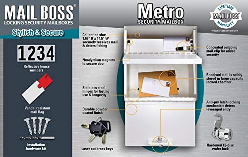 The Metro Mail Boss is a high security wall-mount locking mailbox with contemporary appeal. The stylish and modern Metro is made of heavy-gauge galvanized steel and features a patented anti-pry latch and a commercial grade disc lock for maximum security, so you can safely and conveniently receive sensitive mail at your doorstep. With the innovative mounting bracket, easily install your Metro on wood, brick, stucco and other wall surfaces.