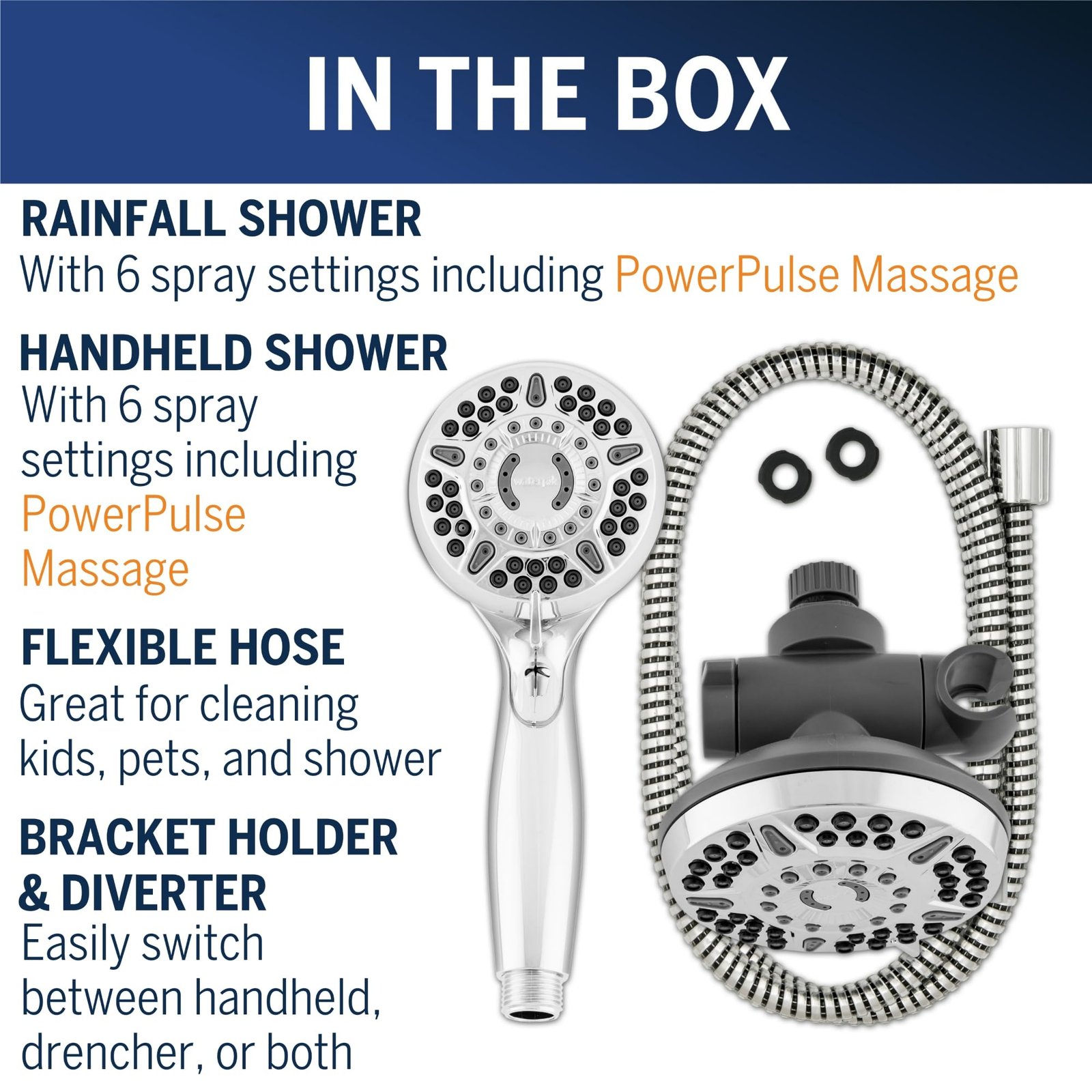 Waterpik 12-Mode 2-in-1 Dual Shower Head System with 5-Foot Hose and PowerPulse Therapeutic Massage, Chrome, XET-633E-643E …