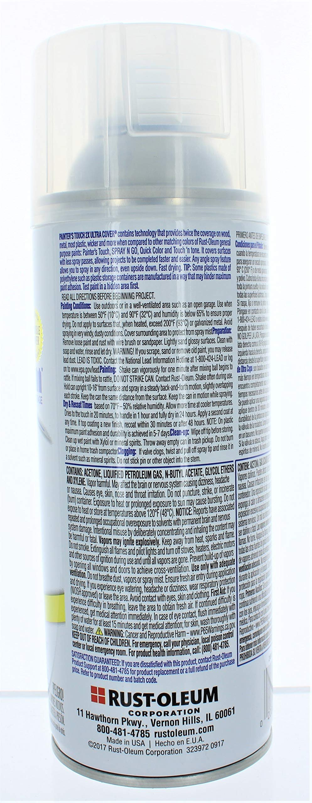249117 Features: -Spray paint. -2X Ultra Cover series. -Advanced double cover technology provides the best formula for ultimate hiding power. -Allows projects to be completed faster and easier. Size: -11 oz – 15 oz. Generic Dimensions: -Product weight: 1.17 lbs. Dimensions: Overall Product Weight: -1.17 Pounds.