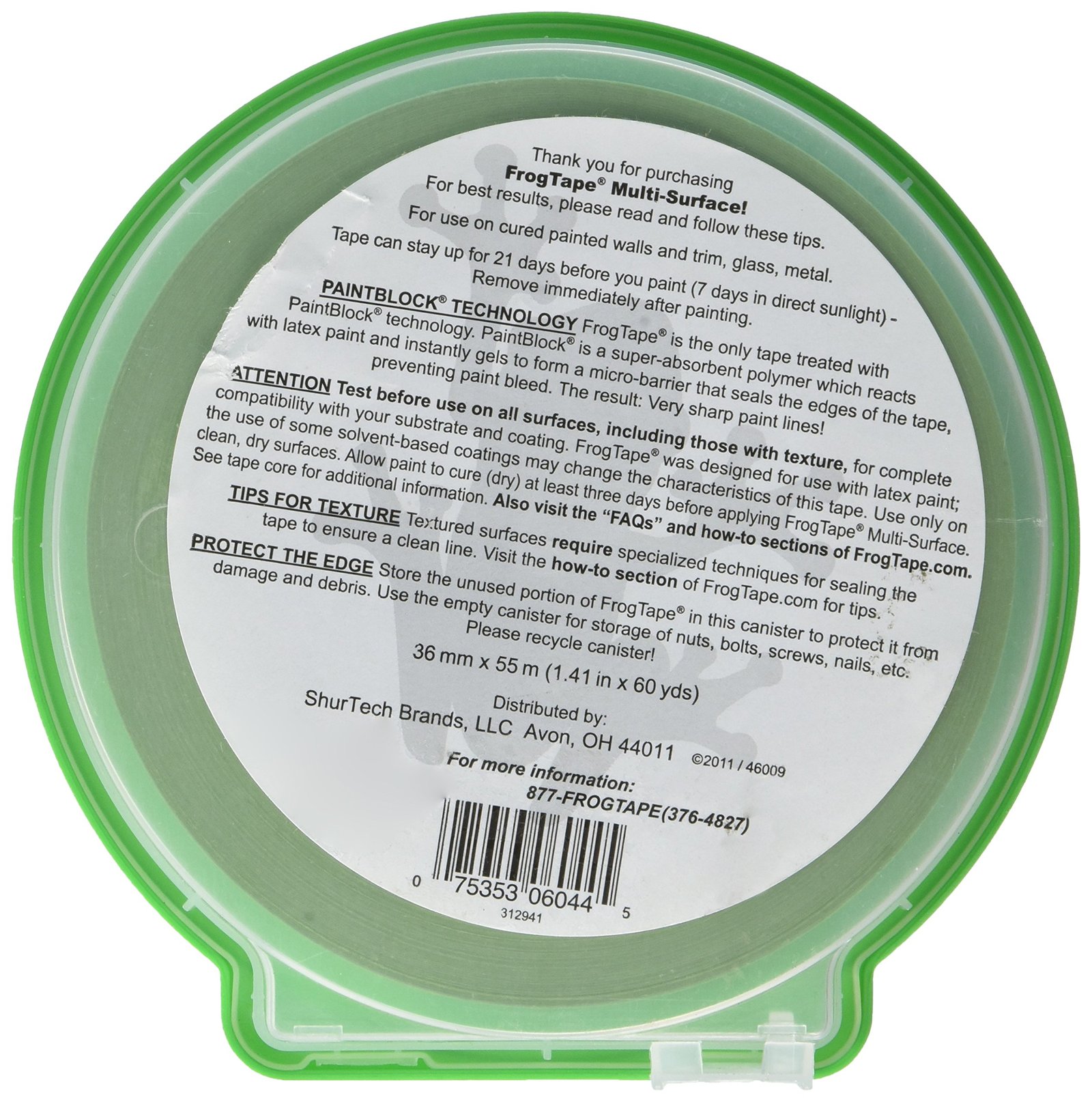 What Makes FrogTape Brand Painter’s Tape Unique? FrogTape is the only painter’s tape treated with PaintBlock Technology. PaintBlock is a super-absorbent polymer which reacts with latex paint and instantly gels to form a micro-barrier that seals the edges of the tape, preventing paint bleed. The result: Very sharp paint lines and less time spent on touch-ups. FrogTape is also available in a convenient storage canister. The canister protects the tape edges from being nicked or damaged and keeps the tape free of dirt and debris. FrogTape is not just another masking tape. FrogTape is the only professional painter’s tape that is treated with PaintBlock during the manufacturing process.
