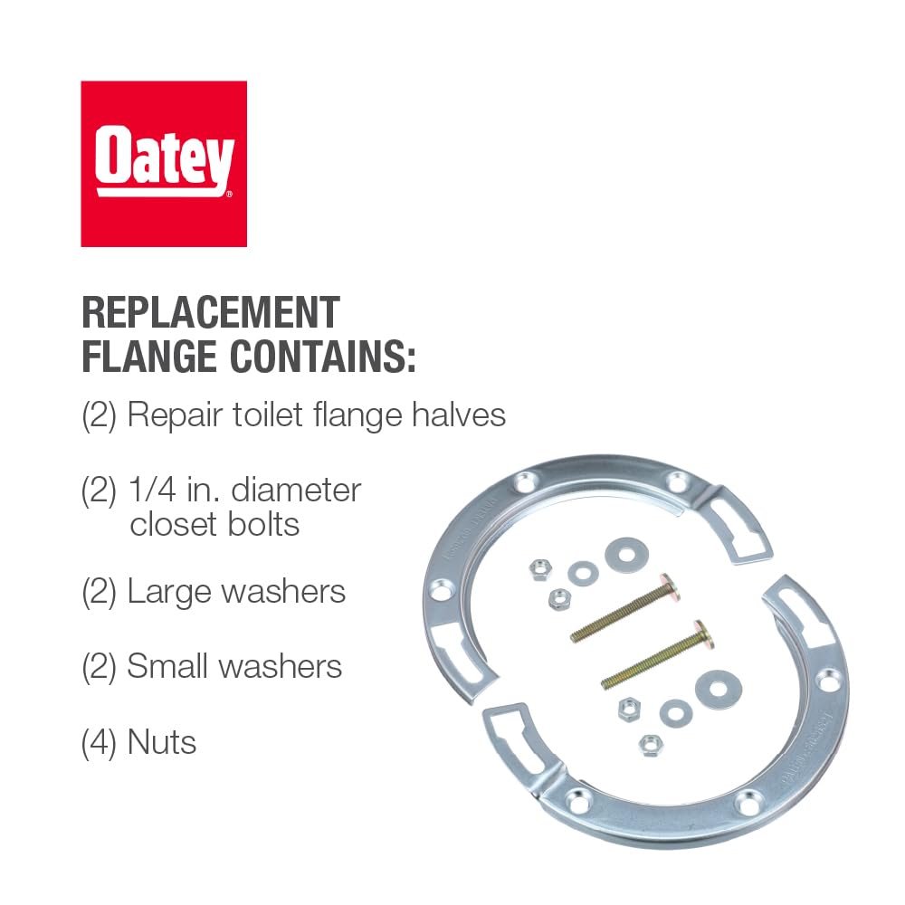 Oatey Moss Bay Replacement Flange is designed to replace a rusted or corroded metal toilet flange ring. The flange hinged design is made out of galvanized steel, allowing long-lasting durability. Use on PVC or ABS toilet flanges for best results. Oatey products have earned the trust of plumbing professionals for over 100 years.