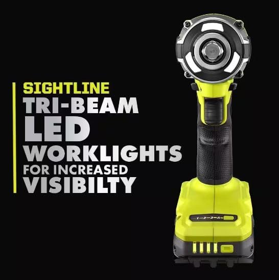 ONE+ HP Technology Delivers Up To 275 ft-lbs. Breakaway Torque Size 26% More Compact and 35% Lighter Over 260 ONE+ Products – All Work With Any RYOBI 18V ONE+ Battery Enhance your RYOBI 18V ONE+ System with the RYOBI 18V ONE+ HP Compact Brushless 4-Mode 1/2″ Impact Wrench. ONE+ HP Technology delivers more power, runtime, durability and speed utilizing brushless motors, advanced electronics and high performance lithium technology. Our compact tools are the lightest and smallest we have ever made, while still delivering optimal power to get the job done. Measuring in at only 5.4″ in long, this tool is 26% more compact and 35% lighter weight while still delivering exceptional torque. The 1/2″ wrench is compatible with all 1/2″ impact rated sockets. This tool delivers up to 275 ft-lbs. of breakaway torque ensuring users are able to remove stubborn bolts. The on-board speed control has 4-modes – high, medium, low and a unique Auto Mode that prevents overtightening and controlled removal in compact applications such as removing brake pads in a wheel well. Tri-Beam LED worklights that allow for clear workspace visibility while the die cast gear case provides greater durability in the harshest work environments. The 1/2″ anvil with friction ring allows quick and secure socket changes limiting user downtime. Best of all, it is part of the RYOBI ONE+ System of over 260 Cordless Products that all work on the same battery platform. This 18V ONE+ HP Compact Brushless 4-Mode 1/2″ Impact Wrench is backed by the RYOBI 3-Year Manufacturer’s Warranty and includes (1) PSBIW25B 18V ONE+ HP Compact 4-Mode 3/8″ Impact Wrench and Operator’s Manual. Battery and charger sold separately.