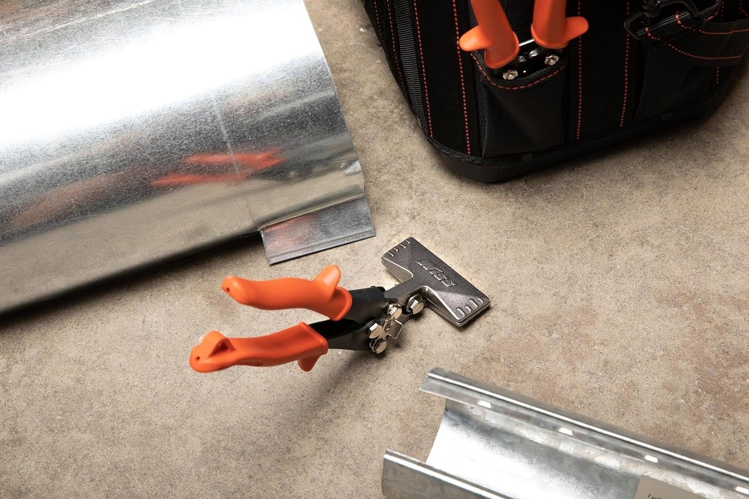 As a pivotal piece in your toolbox, this sheet metal seamer stands out. The tool’s handle span is optimized for comfort, making it a reliable metal bending plier for both seasoned professionals and enthusiastic DIYers. The built-in handle latch secures the blades when not in use, adding an extra layer of safety.