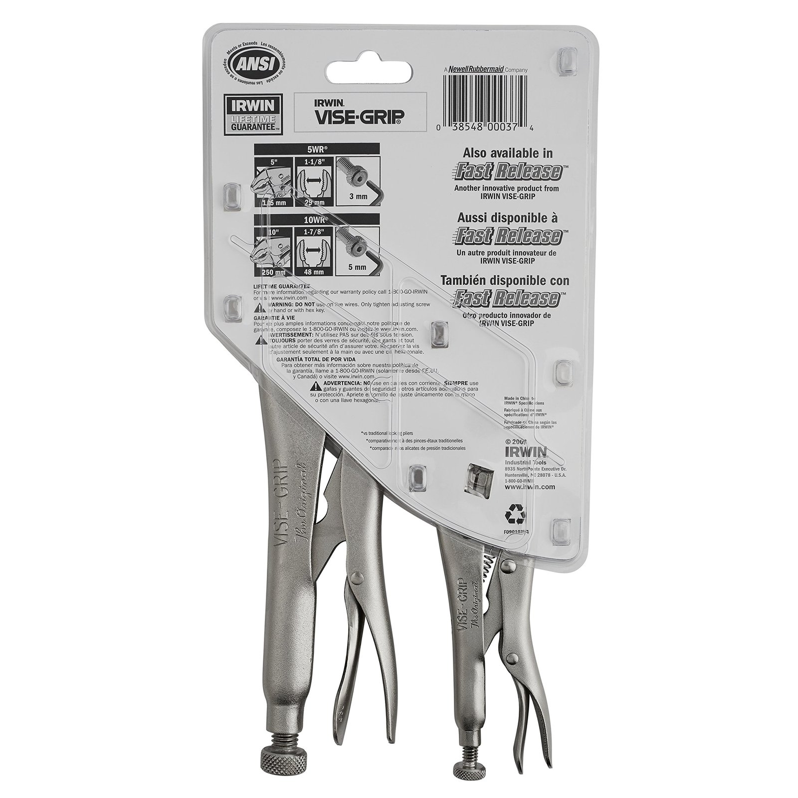 The Irwin Tools 37- 2 Pc. Original Locking Pliers Set Contains: 10WR and 5WR. These two tools provide you with the versatility to do a lot of jobs. The 10WR features a curved jaw with wire cutter for a wide array of applications. The 5WR also features a curved jaw with wire cutter, and it’s compact size allows you to get into tight spaces and work with small parts. These locking tools are ideal for tightening, clamping, twisting and turning. Vise-Grips are constructed of high-grade heat-treated alloy steel for maximum toughness and durability.