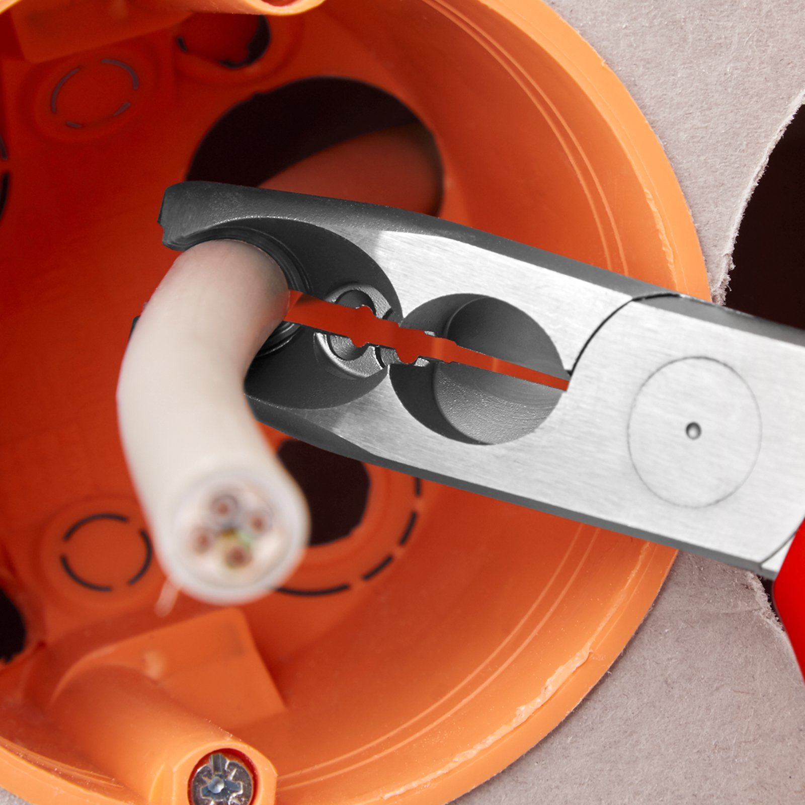 Pliers black atramentized. Handles with multi-component grips. Suitable for universal use: precision wire stripping holes for conductors from 1.5 and 2.5 mm².