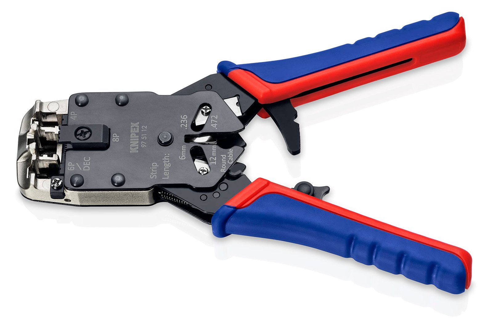 Professional tool for cutting and stripping unshielded ribbon telephone cables. With length Cutter and dismantling knife for ribbon cables 6 and 12 mm length. Handles with multi-component grips.