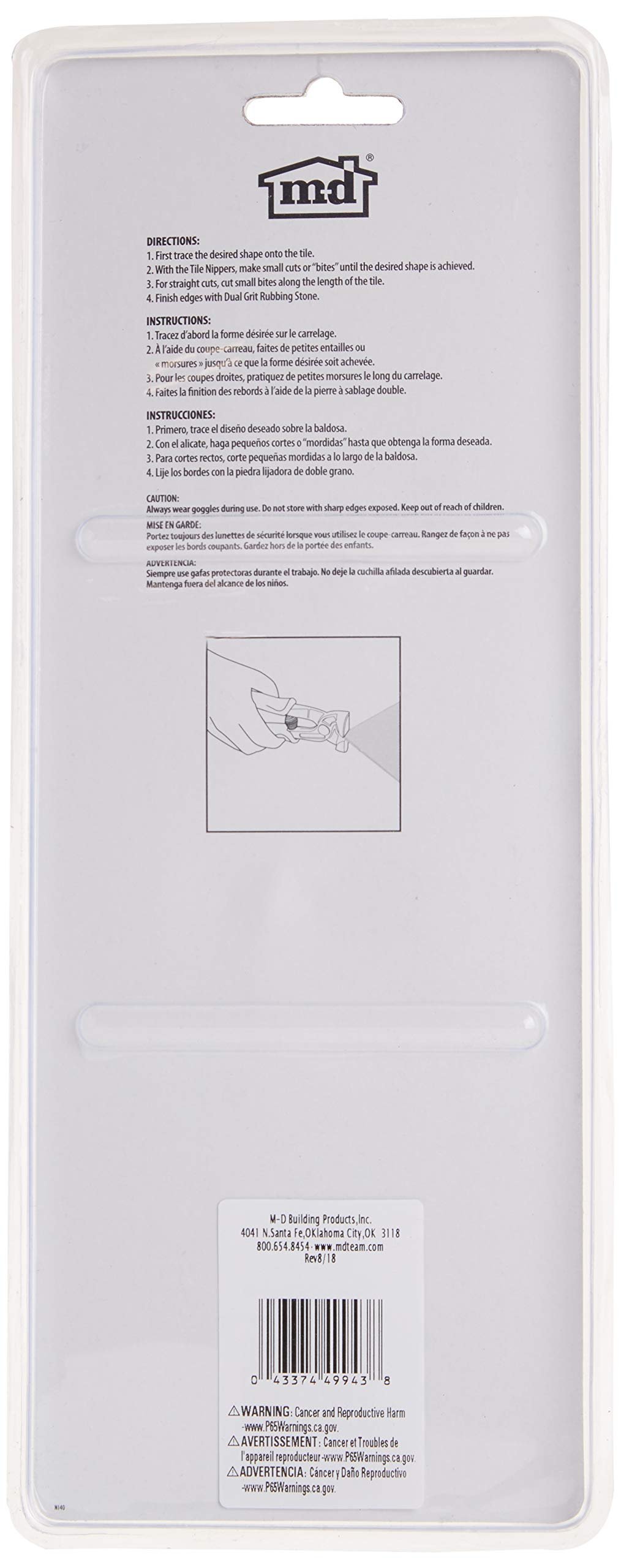 The M-D Pro Compound Tile Nipper is a handheld tool featuring an ergonomic handle and compound action mechanism allowing greater power and comfort while cutting ceramic or glass tiles. This tile installation staple is made for mosaic work as well as trimming edges, creating irregular shapes and removing small pieces from larger tile. The nippers feature sharp, pointed jaws with carbide tips capable of breaking small pieces of tile.