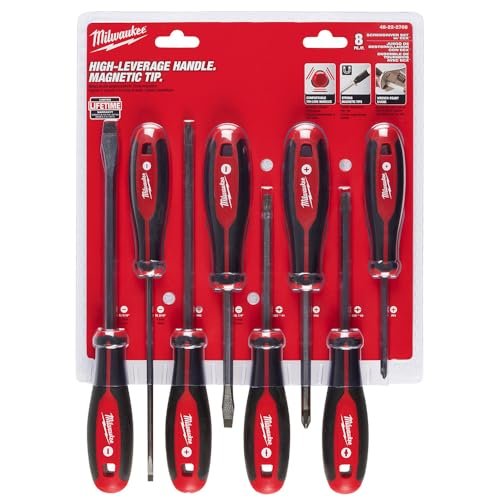Featuring hardened tips and forged shanks the Milwaukee 8 Piece Screwdriver Set provides professional grade solutions and durability to the user. Bit types are marked on the cap of each tool for quick identification and increased efficiency.The comfortable tri-lobe handle allows users to comfortably apply more leverage