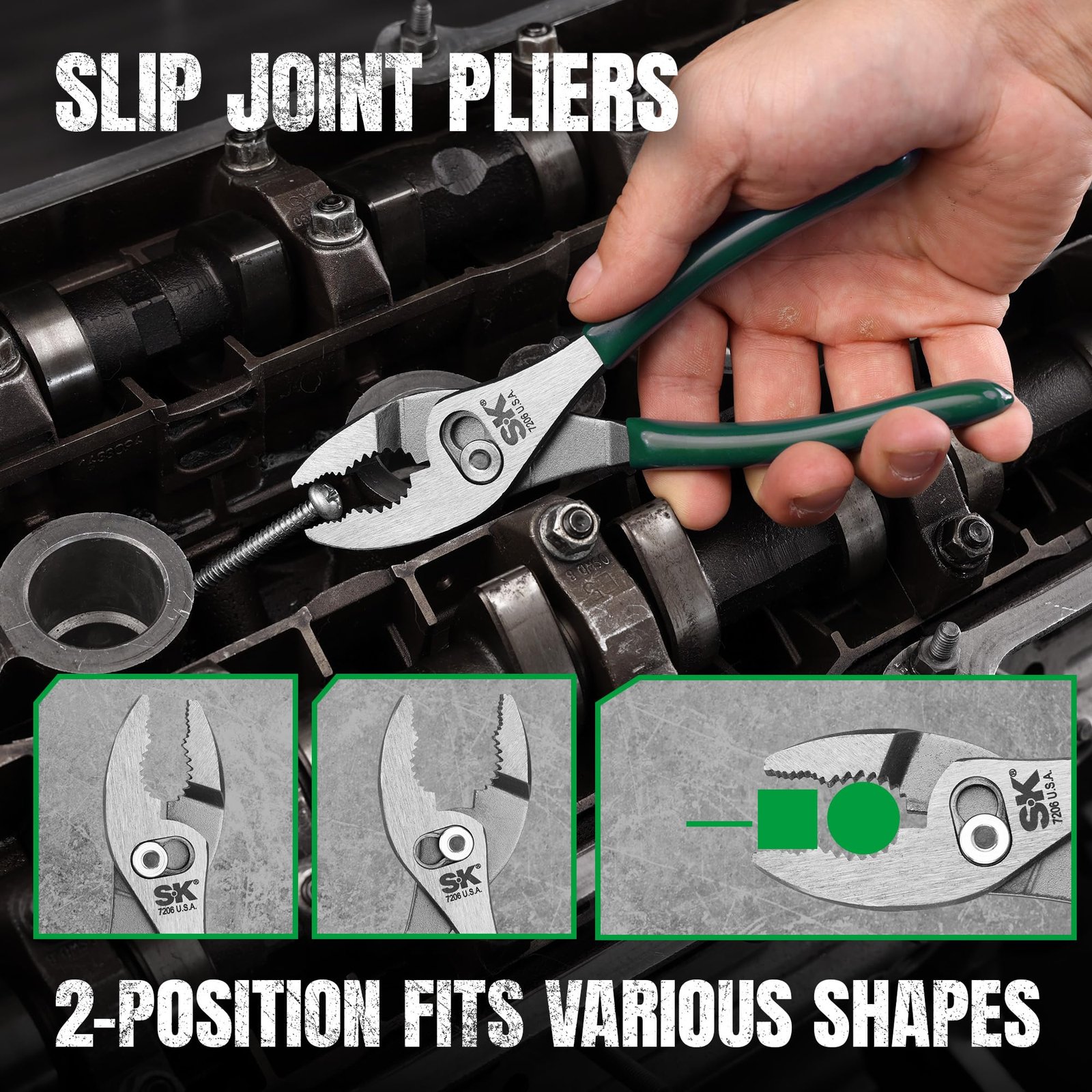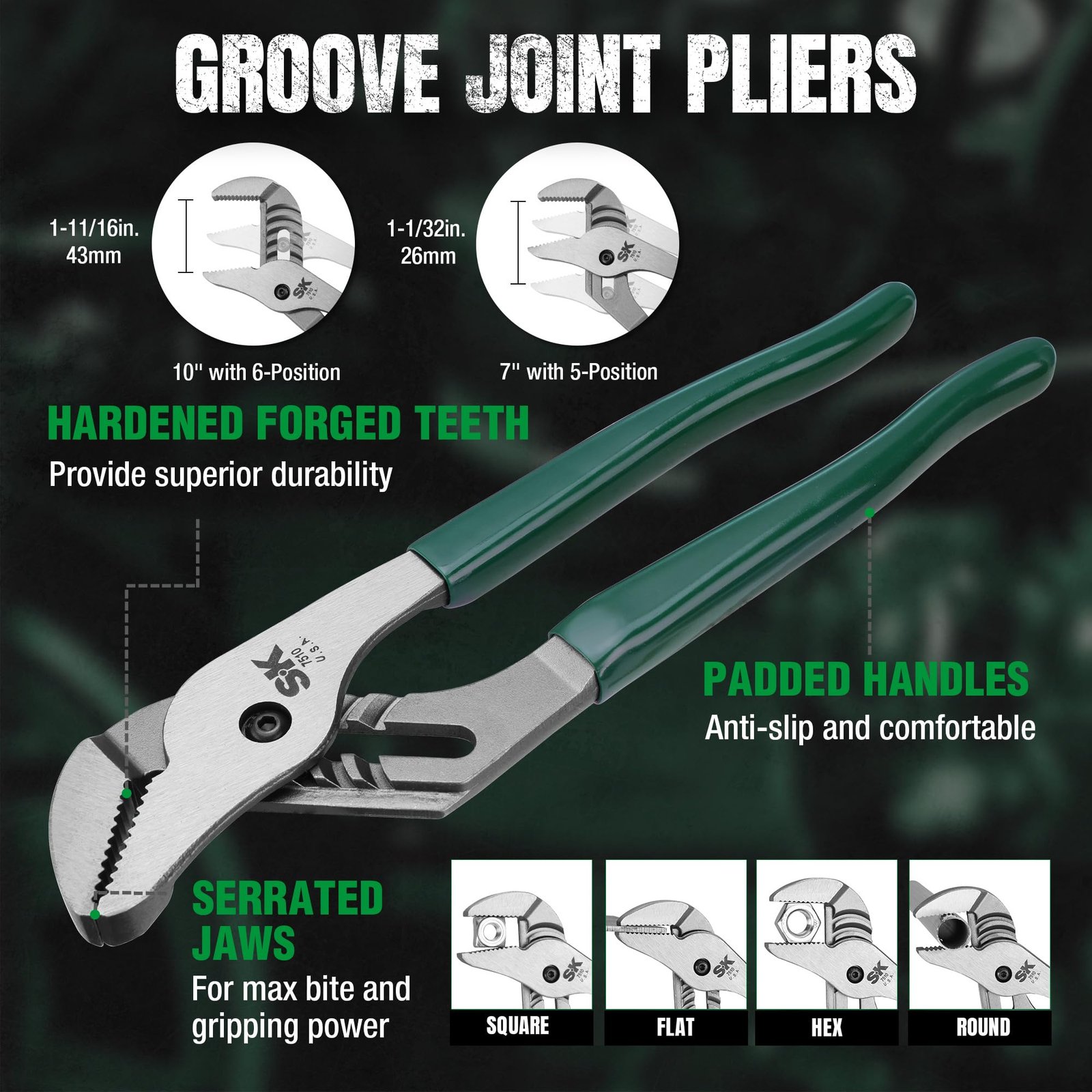 SK Tools USA 5-Piece Pliers Set, 6″ Slip Joint, 7″ & 10″ Groove Joint, 8″ Long Nose & Angled Diagonal Pliers, High Carbon Steel, with Rolling Pouch