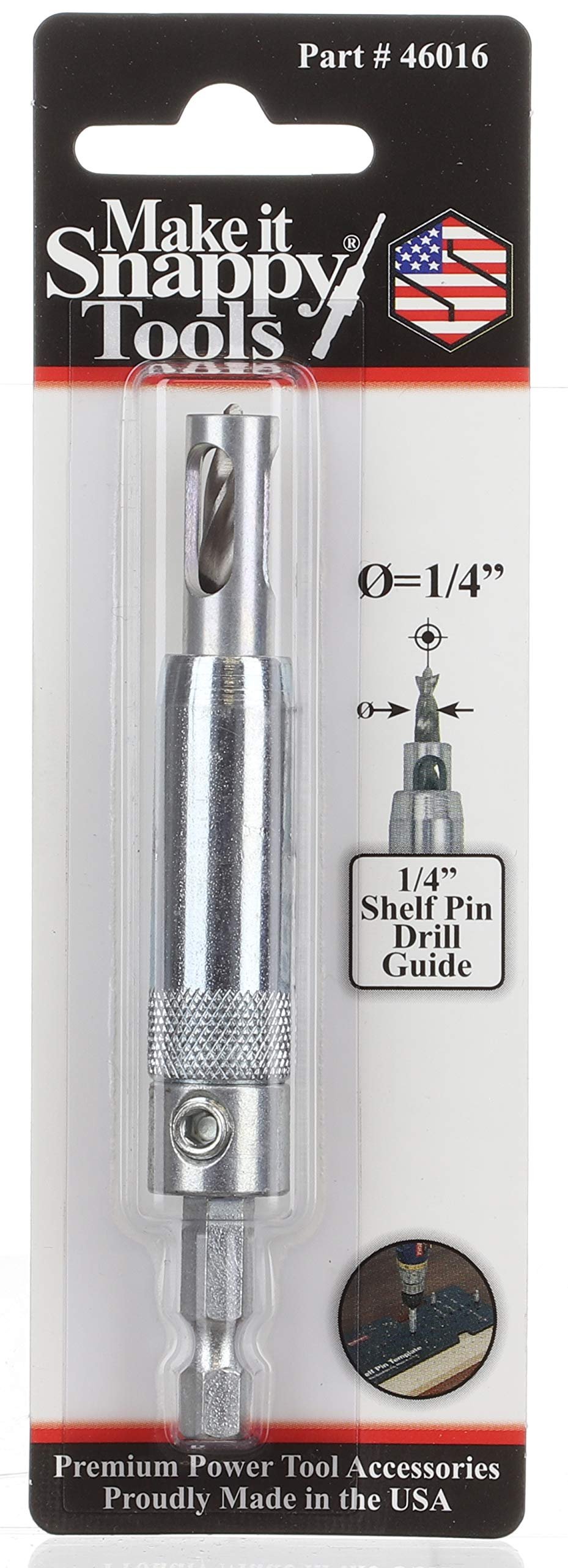 Snappy designed this 1/4″ shelf pin bit for use with a shelf pin drilling jig. The brad-point drill bit makes sharp, clean-cut holes for standard shelf pins.