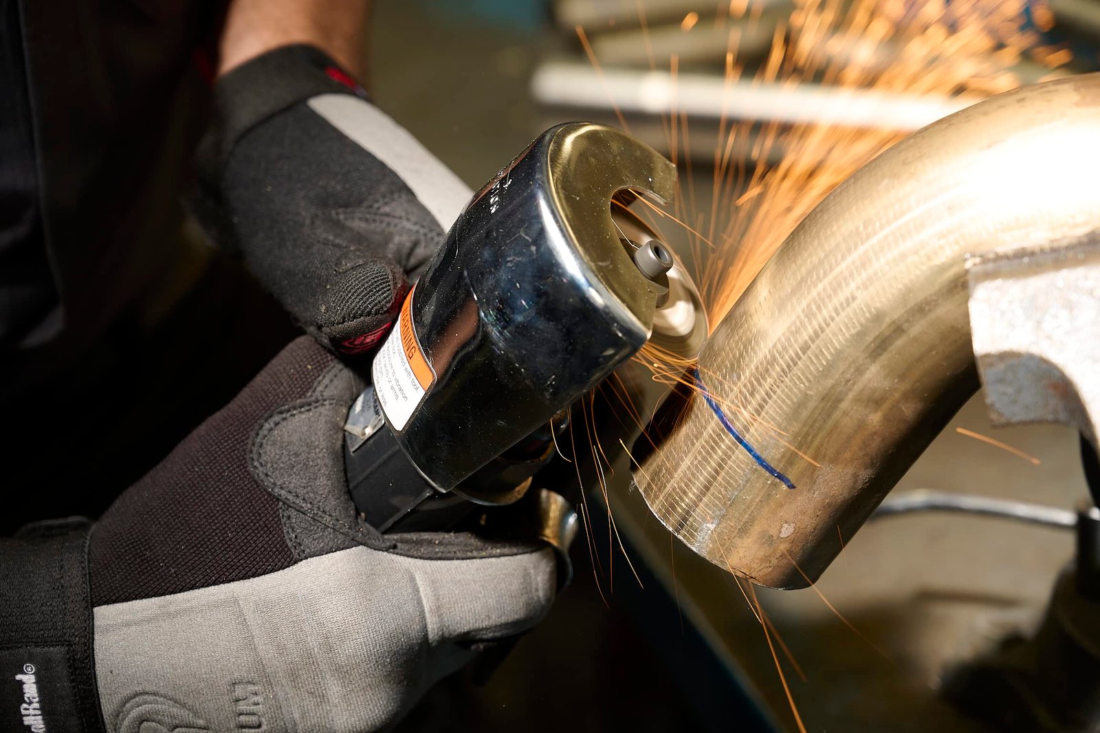 Exhaust replacement is this powerful tool’s specialty. Now you can cut off mufflers and tail pipes quickly, efficiently, and quietly. It has an 18,000 rpm motor that can handle the toughest exhaust replacements and cut sheet metal, nuts, and bolts. Features & Benefits: 18,000 rpm motor for fast cutting Built-in speed regulator 3/8-inch arbor x 2-7/8-inch wheel size Large, hooked, self-locking throttle lever for user comfort and safety 360-degree rotatable chrome-plated steel shield deflects sparks and debris away from operator Fast, quiet operation Specifications Strokes Per Min. Free Speed (rpm) Weight Lbs. (kg) Length In. (mm) Av. Air Cons. Cfm (i/min) @ Load (I/min) Sound dBA (Pressure /Power) Air Inlet NPTF in. Min. Hose Size In. (mm) Rated Power hp (kw) Collet Size in. N/A 18,000 2.3 (1.04) 8.88 (226) 10 (283) 25 (708) 94.3/107.3 1/4 3/8 (10) N/A N/A