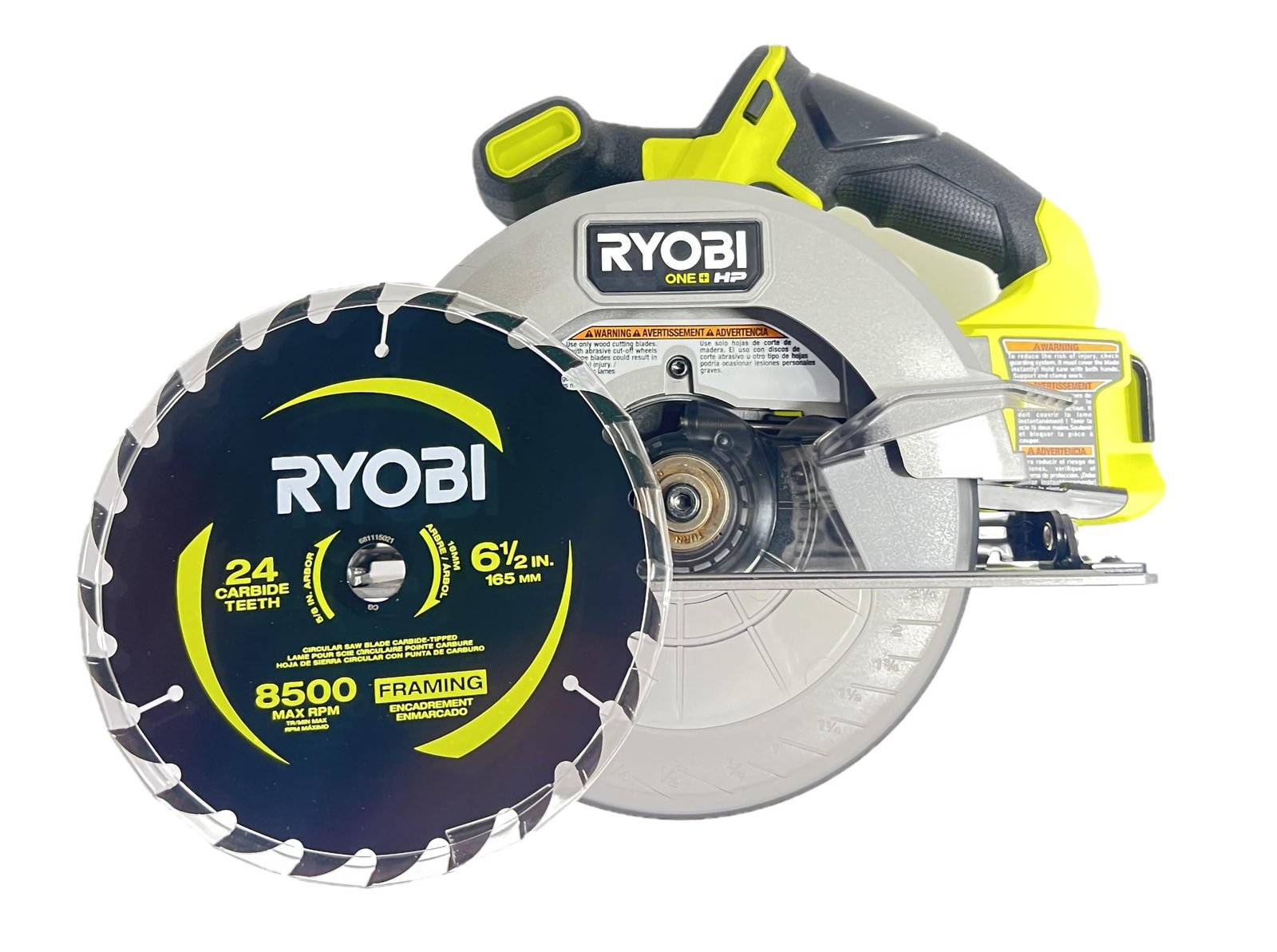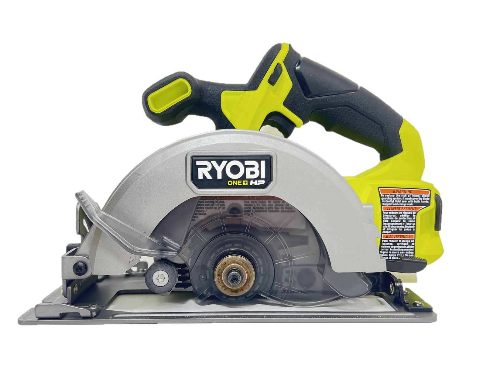 ONE+ HP Technology Delivers up to 32% Faster Cutting with 4,900 RPM 25% Lighter Weight Over 260 ONE+ Products– All Work With Any RYOBI 18V ONE+ Battery Enhance your RYOBI 18V ONE+ HP System with the RYOBI 18V ONE+ HP Compact Brushless 6-1/2″ Circular Saw. ONE+ HP Technology delivers more power, runtime, durability, and speed utilizing brushless motors, advanced electronics, and HIGH PERFORMANCE lithium technology. Our 6-1/2″ circular saw is part of the Compact Series and is 25% lighter weight providing portability and ease of use. With 4,900 RPM, this saw provides 32% faster cutting and up to 350 cuts per charge to provide all day power. This compact circular saw offers users the ultimate cut versatility with an adjustable depth gauge that can cut up to 2-1/4″ deep and can bevel 0 – 50°. We upgraded the aluminum base to be lighter and more durable for even the toughest of jobs. Users have ultimate sight line visibility with the on-board LED worklight illuminating their cut with ease. Best of all, it is part of the RYOBI ONE+ System of over 260 cordless products that all work on the same battery platform. This 18V ONE+ HP Compact Brushless 6-1/2″ Circular Saw is backed by the RYOBI 3-Year Manufacturer’s Warranty and includes (1) PSBCS01 18V ONE+ HP Compact Brushless 6-1/2″ Circular Saw, (1) Vacuum Dust Adaptor, (1) 24T Carbide Thin Kerf Blade, (1) Hex Wrench, and Operator’s Manual. Battery and charger sold separately.