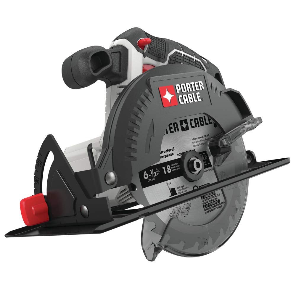 This Circular Saw features a high-performance motor for aggressive cutting. Its carbide-tooth blade delivers a 2-1/8-ft. cutting capacity for a variety of cutting applications. The beveling shoe pivots up to 50 degrees for non-traditional cutting applications. This saw also offers a contoured overmolded handle optimized for increased user comfort. Its lightweight design reduces jobsite fatigue. This PORTER-CABLE circular saw is a part of the 20V MAX System (battery sold separately).